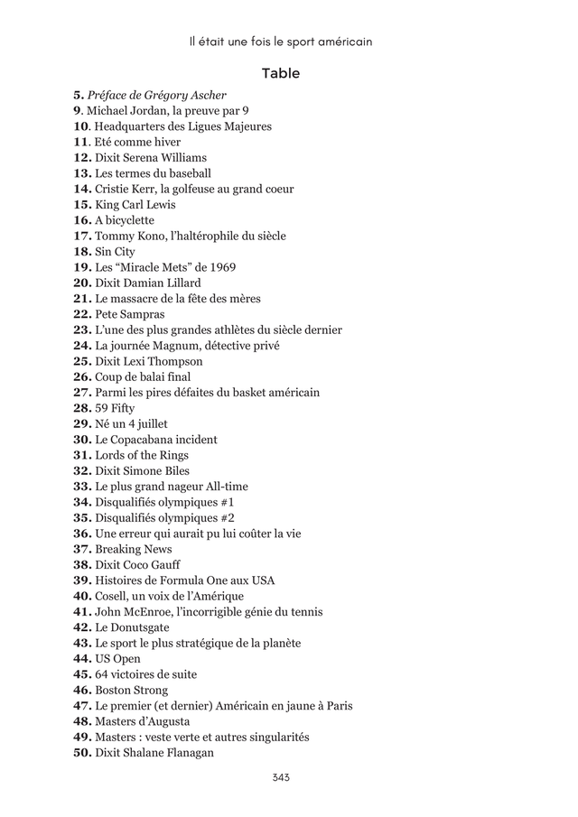 A travers une multitude de courts récits, retrouvez les grands exploits qui ont fait briller le pays de l'Oncle Sam, plongez dans les victoires éclatantes et les destins hors du commun qui ont fait évoluer la société américaine et marqué l’histoire d'une nation où le sport est roi.